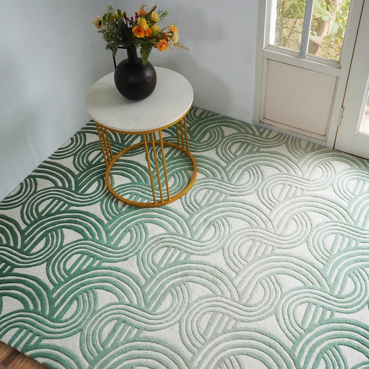 "At RuggleUp, we specialize in creating premium, handcrafted custom rugs tailored to your unique style. To initiate the production process, we require a minimum advance payment of 50% of the total order value. This advance secures your order and enables our skilled artisans to begin the custom rug weaving process.